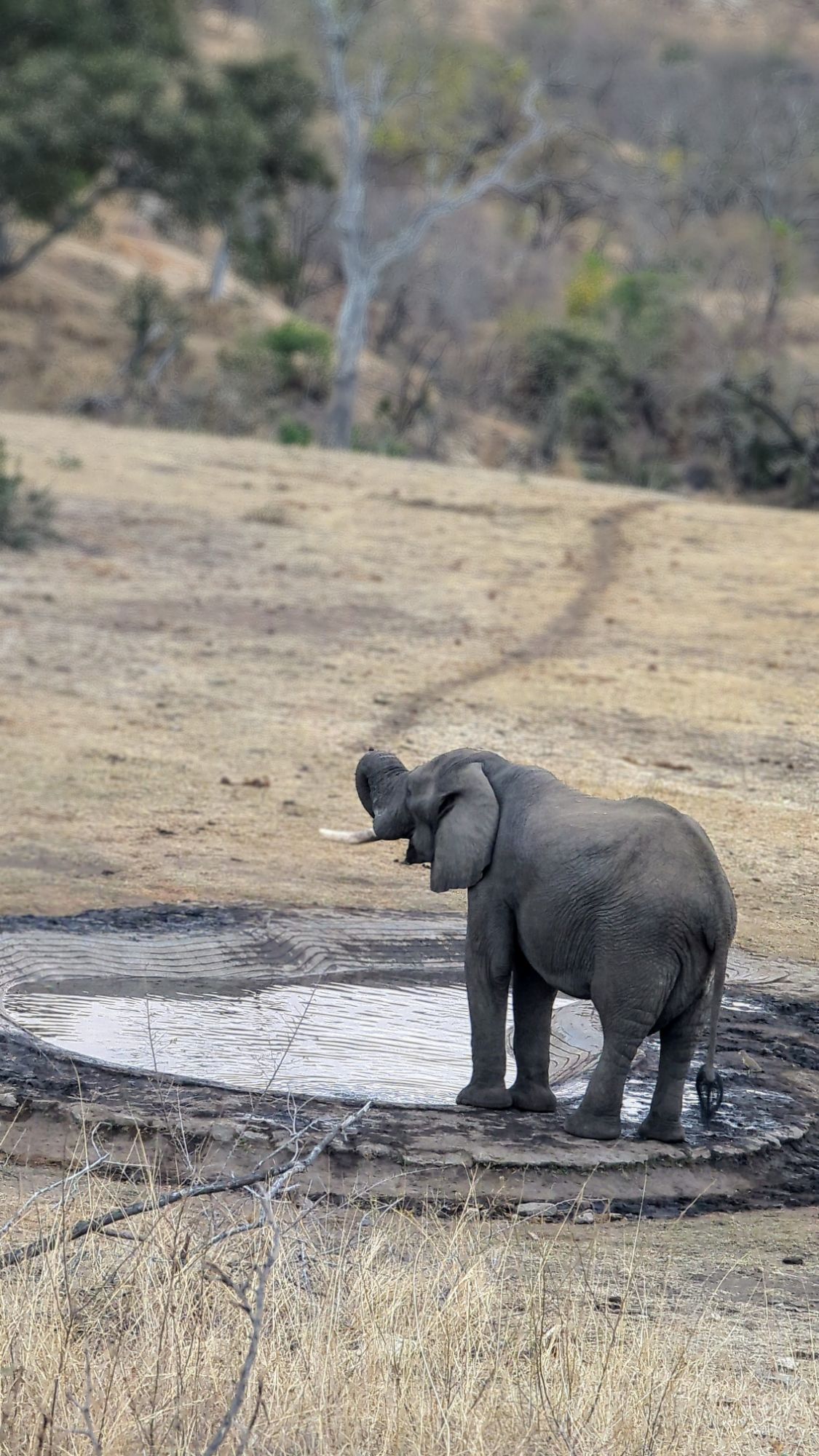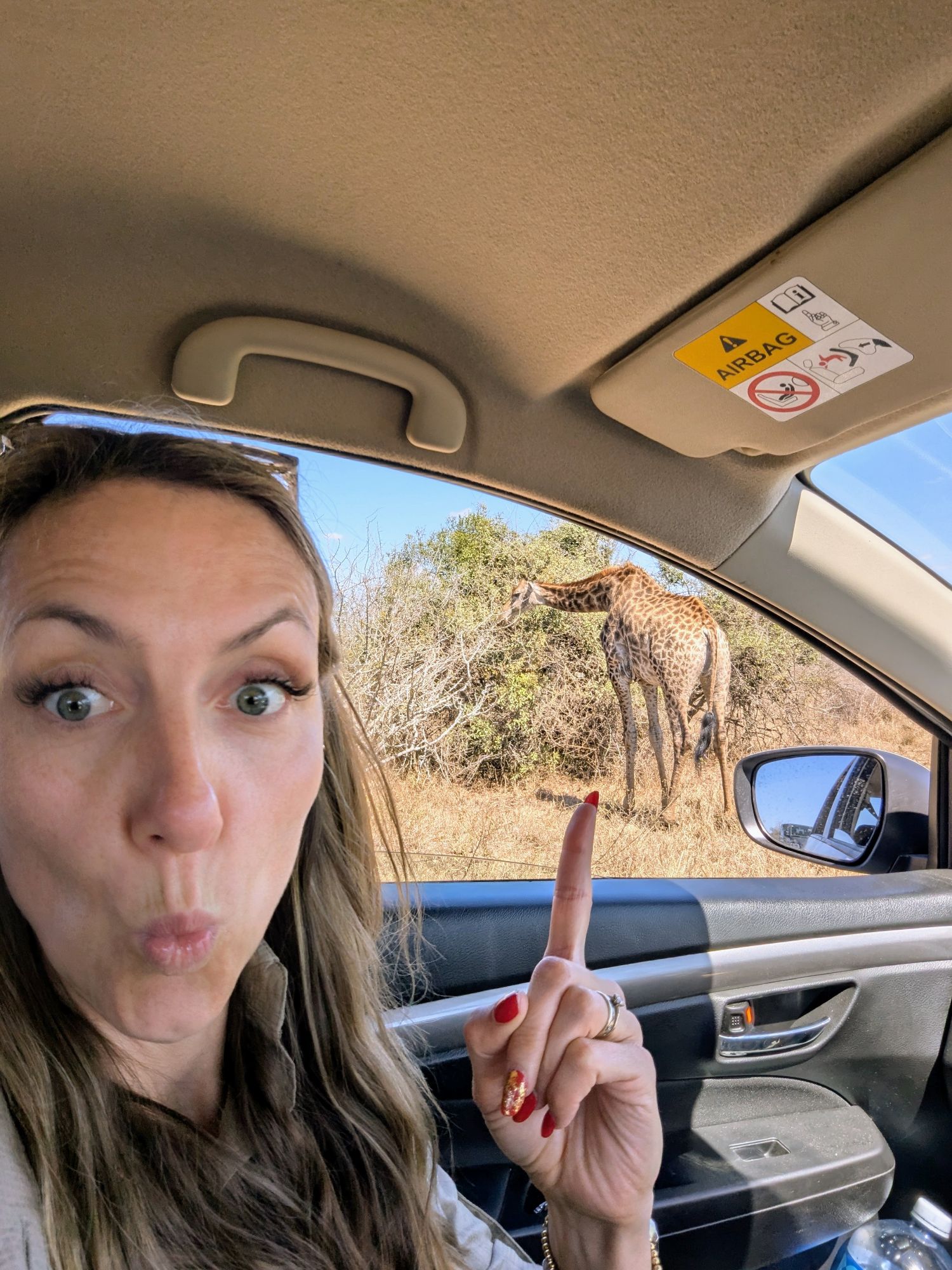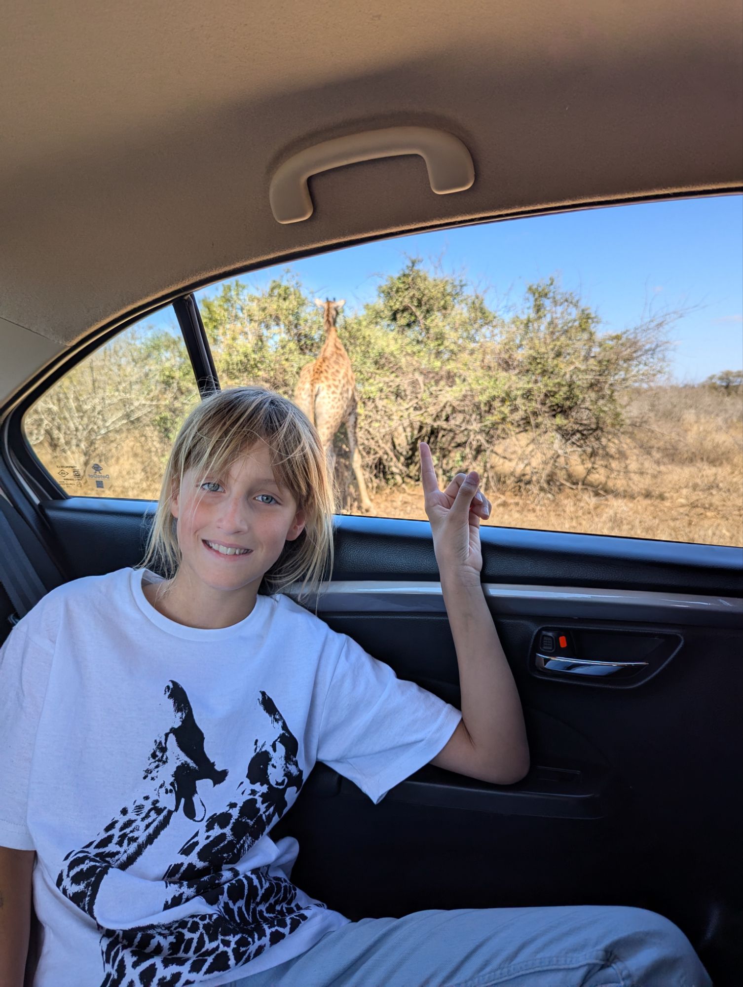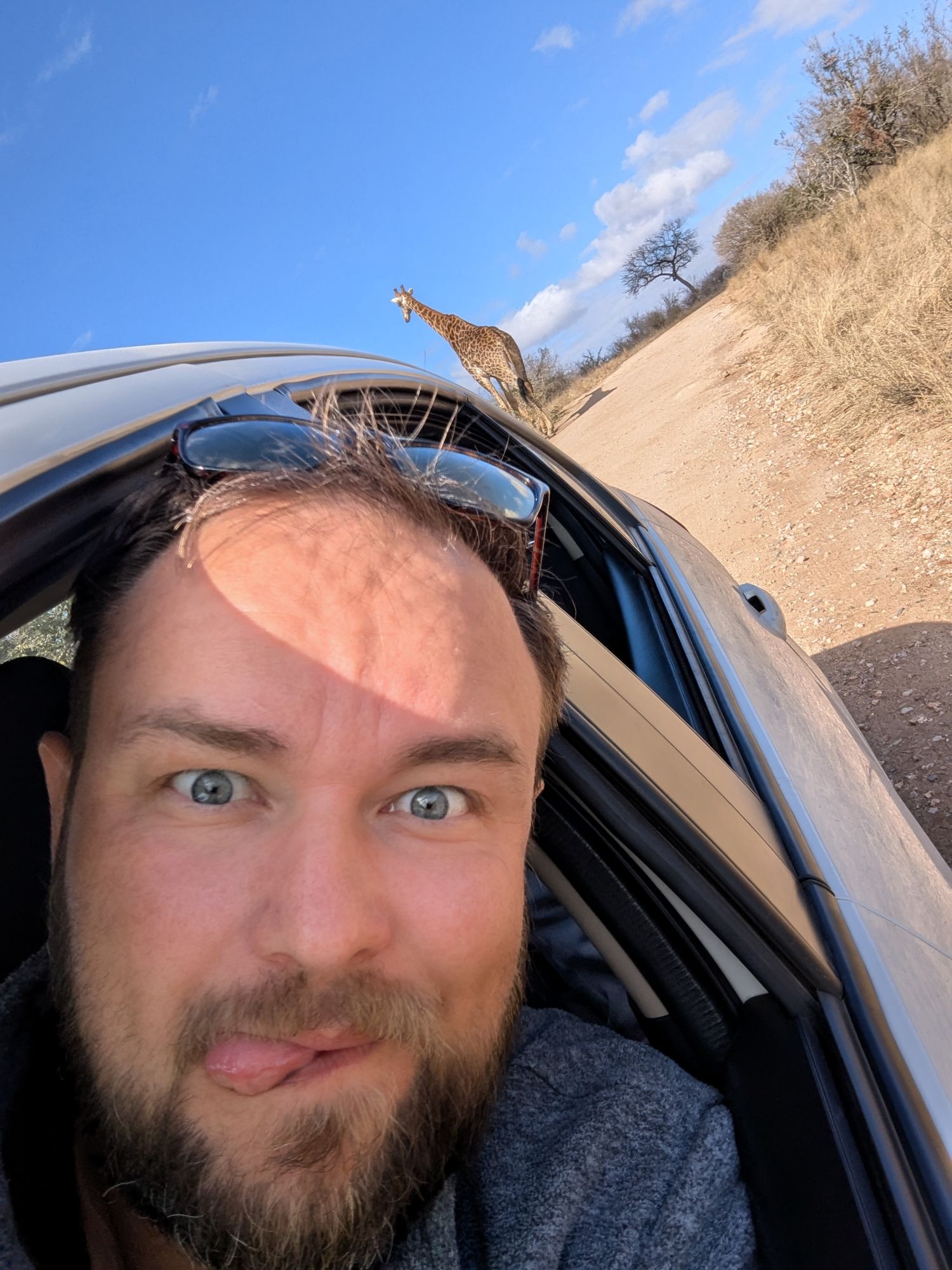 Das Problem im Krüger ist, dass man das Auto niemals außerhalb der Camps verlassen darf. Wenn die Blase aber drückt, wird’s unangenehm. Irgendwann geht es dann nicht mehr. Bennet hatte sicher gehörig Adrenalin im Blut, als er mal kurz aussteigen musste. „Hintern ans Auto und Speedpinkeln!!!!🫨“ Ein schneller Fahrerwechsel musste dann auch noch her. 1,2,3 und los⏰!