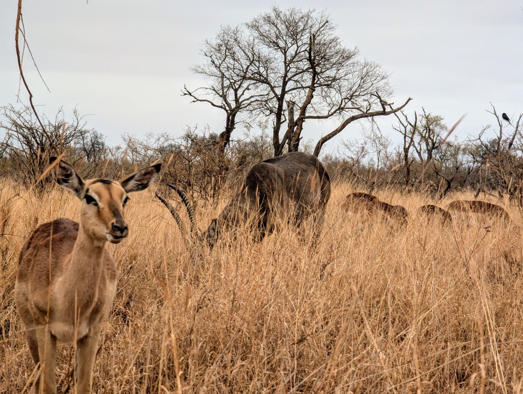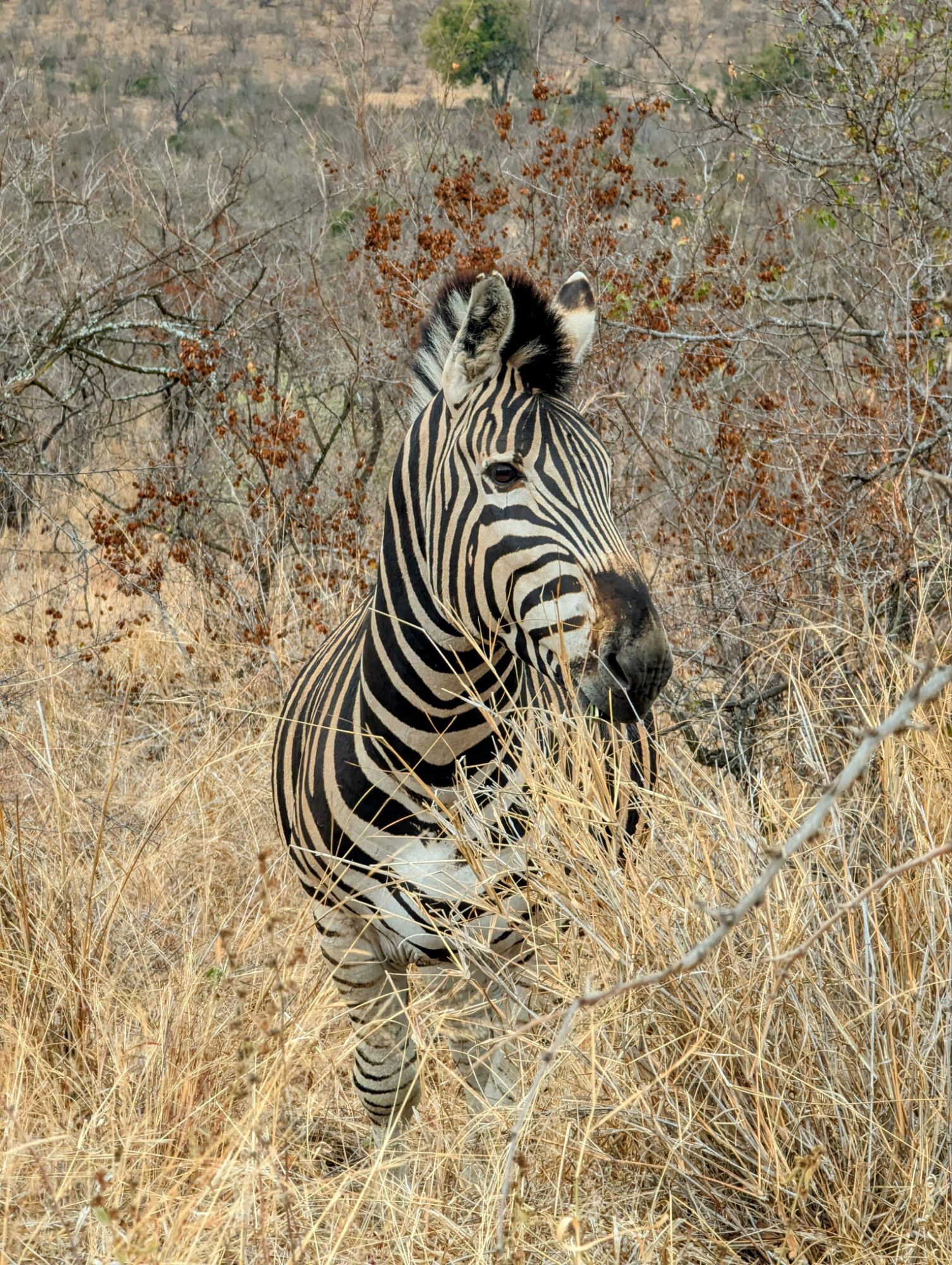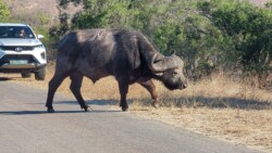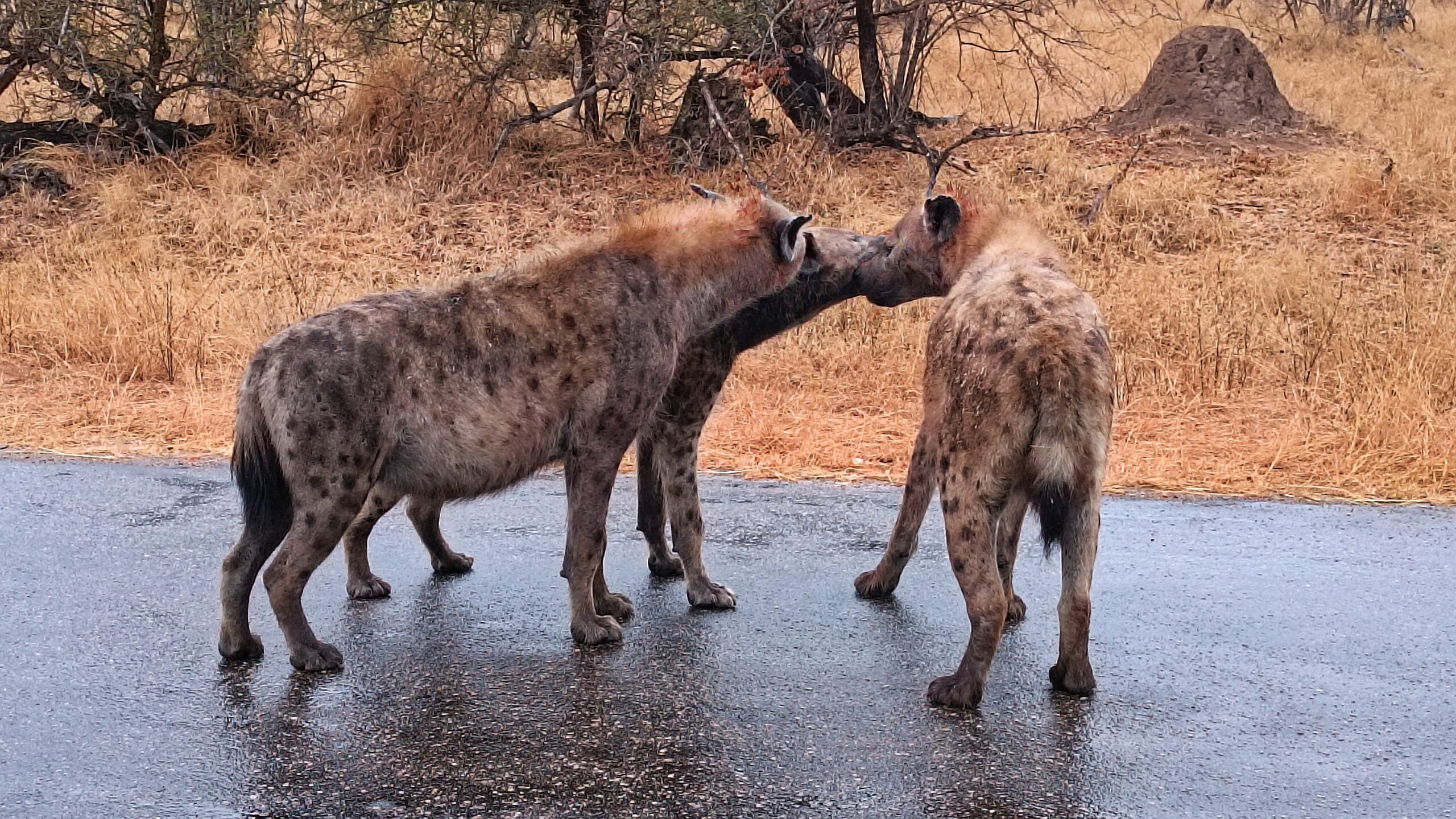 Das Problem im Krüger ist, dass man das Auto niemals außerhalb der Camps verlassen darf. Wenn die Blase aber drückt, wird’s unangenehm. Irgendwann geht es dann nicht mehr. Bennet hatte sicher gehörig Adrenalin im Blut, als er mal kurz aussteigen musste. „Hintern ans Auto und Speedpinkeln!!!!🫨“ Ein schneller Fahrerwechsel musste dann auch noch her. 1,2,3 und los⏰!