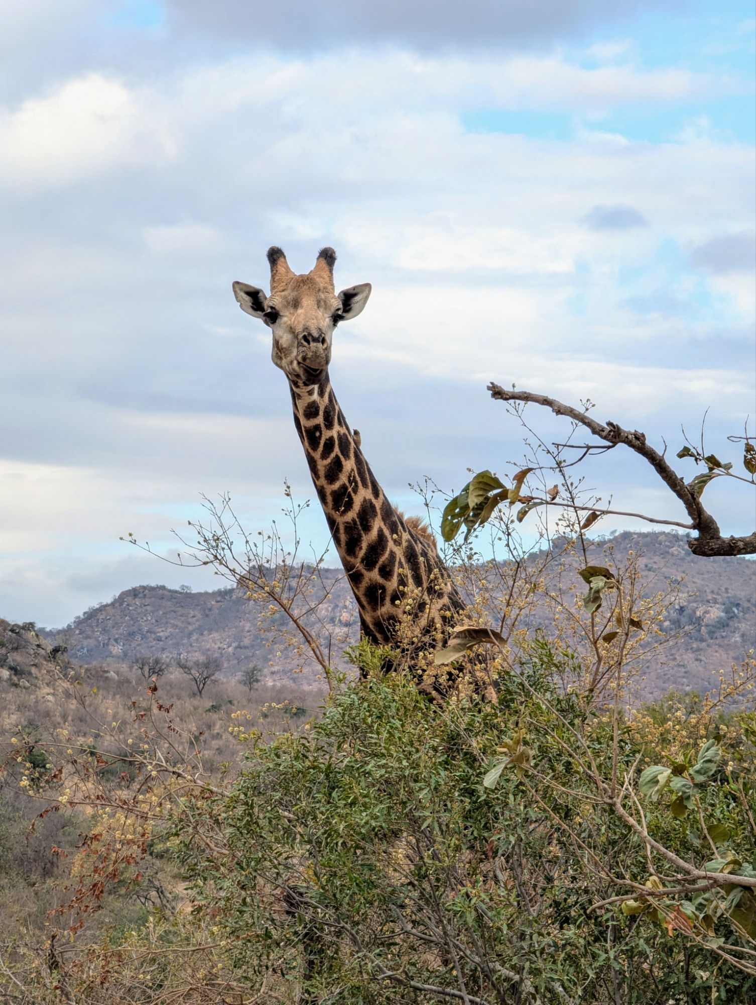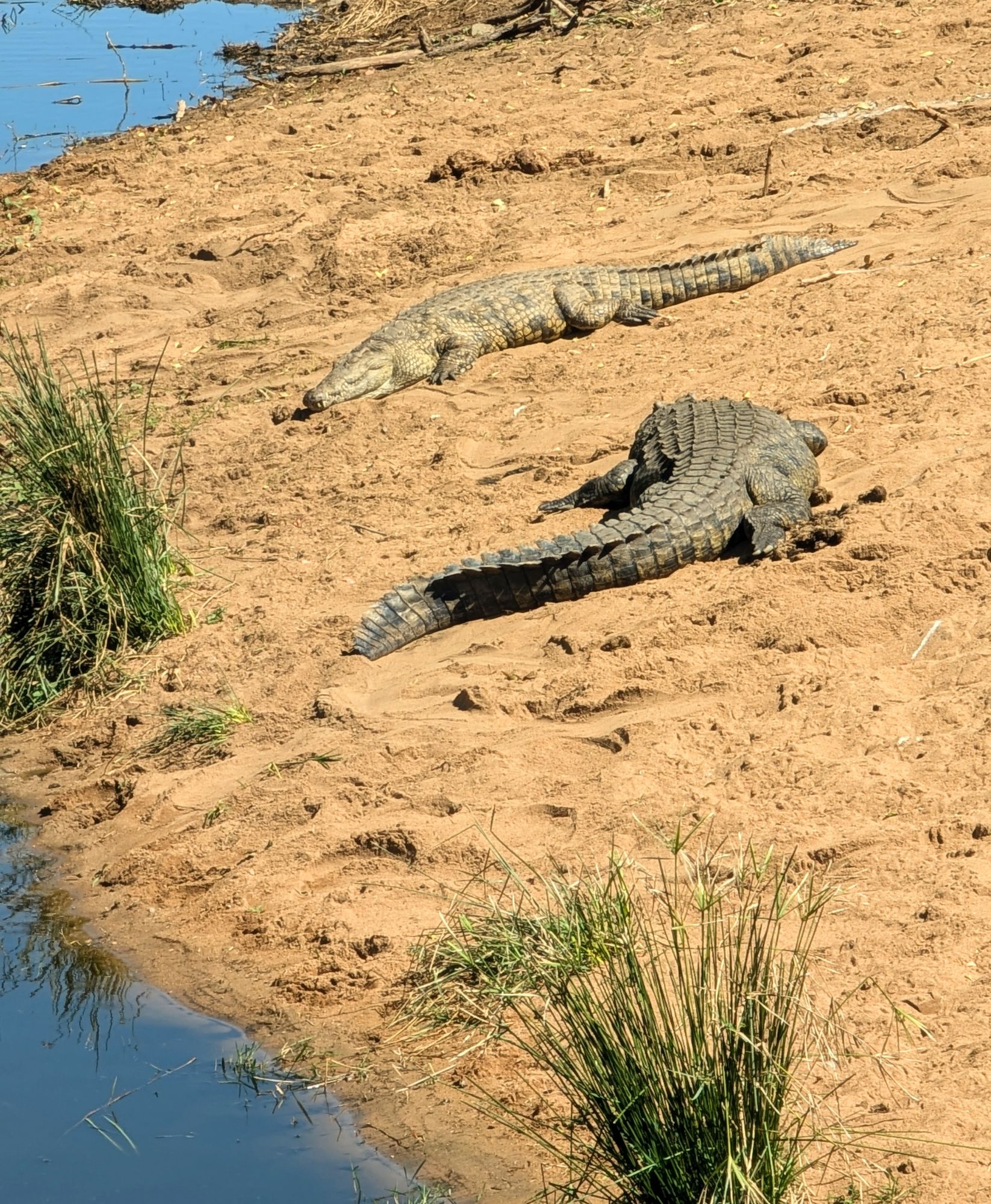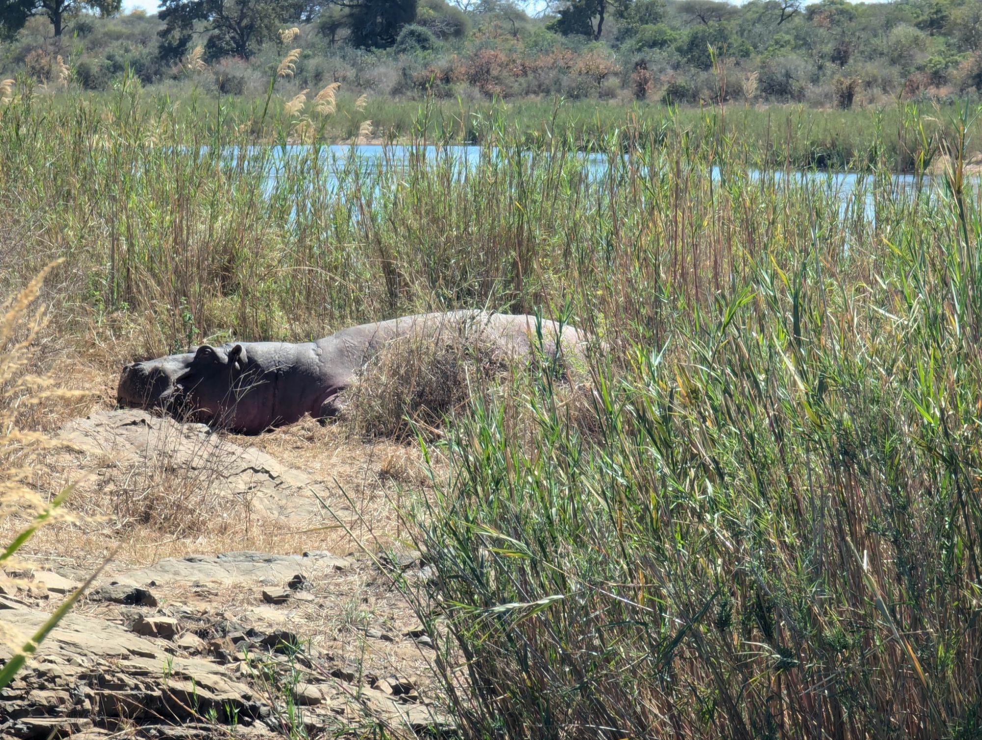Kurz nach dem Mittag erreichten wir dann das Skukuza Restcamp. Hier verbrachten wir unsere Mittagspause. Das Camp liegt direkt am Fluss und wir konnten Krokodile und eine entspannte Büffelherde beobachten. Langsam wurde die Zeit knapp und wir musste dann ziemlich zügig zurück, um pünktlich zu unserer gebuchten Safari zu kommen. Also Speedsafari auf dem Rückweg!!! –> nur Halt bei spektakulären Tieren☝🏼.