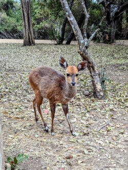 Unsere rustikale Unterkunft im Berg-En-Dal Restcamp haben wir schon bezogen und danach noch kurz das nötigste eingekauft. Direkt an unserer Unterkunft ließen sich dann ein paar Buschböcke blicken lassen, die bereitwillig für Fotos posierten 🥰