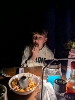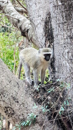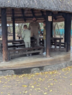 Den letzten Abend verbrachten wir dann im Camp- Restaurant und teilten unsere Krokodil- Vorspeise mit zwei Buschbabies. So niedliche Tiere, die mal eben 2m aus dem Stand springen können. Für die Kids gabs dann noch die obligatorischen Souvenirs. Endlich ein Taschenmesser für den Jungen, was auch anschließend beim Schnitzen noch ausprobiert werden musste. Direkt am Camp hörten wir dann noch eine Elefantenherde in der Dunkelheit. Wirklich sehr cool❤️.