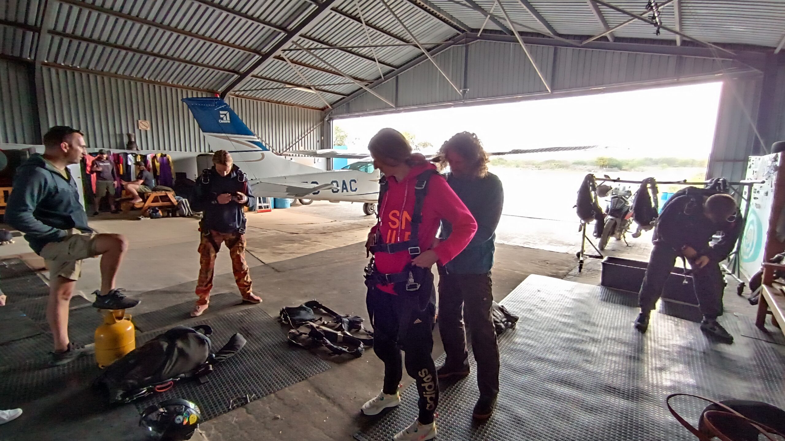 Unser letzter Tag in Südafrika ist da. Wir haben die Koffer gepackt und sind noch ein wenig mit dem Auto unterwegs. Bevor wir einen letzten Strand erkunden, holen wir Sandras Fallschirmsprung nach. Wäre ja auch zu schade, wenn der ausgefallen wäre 😄