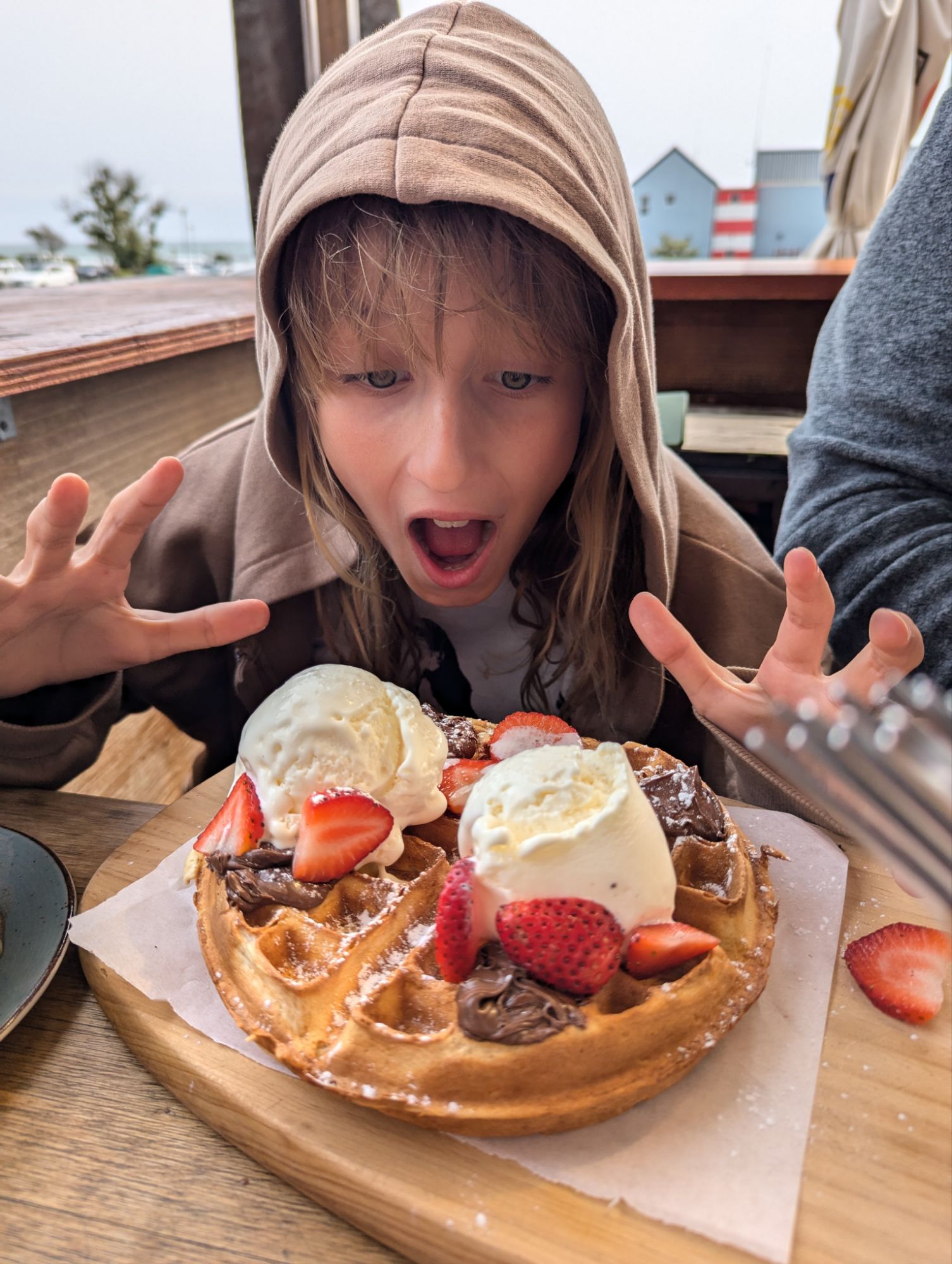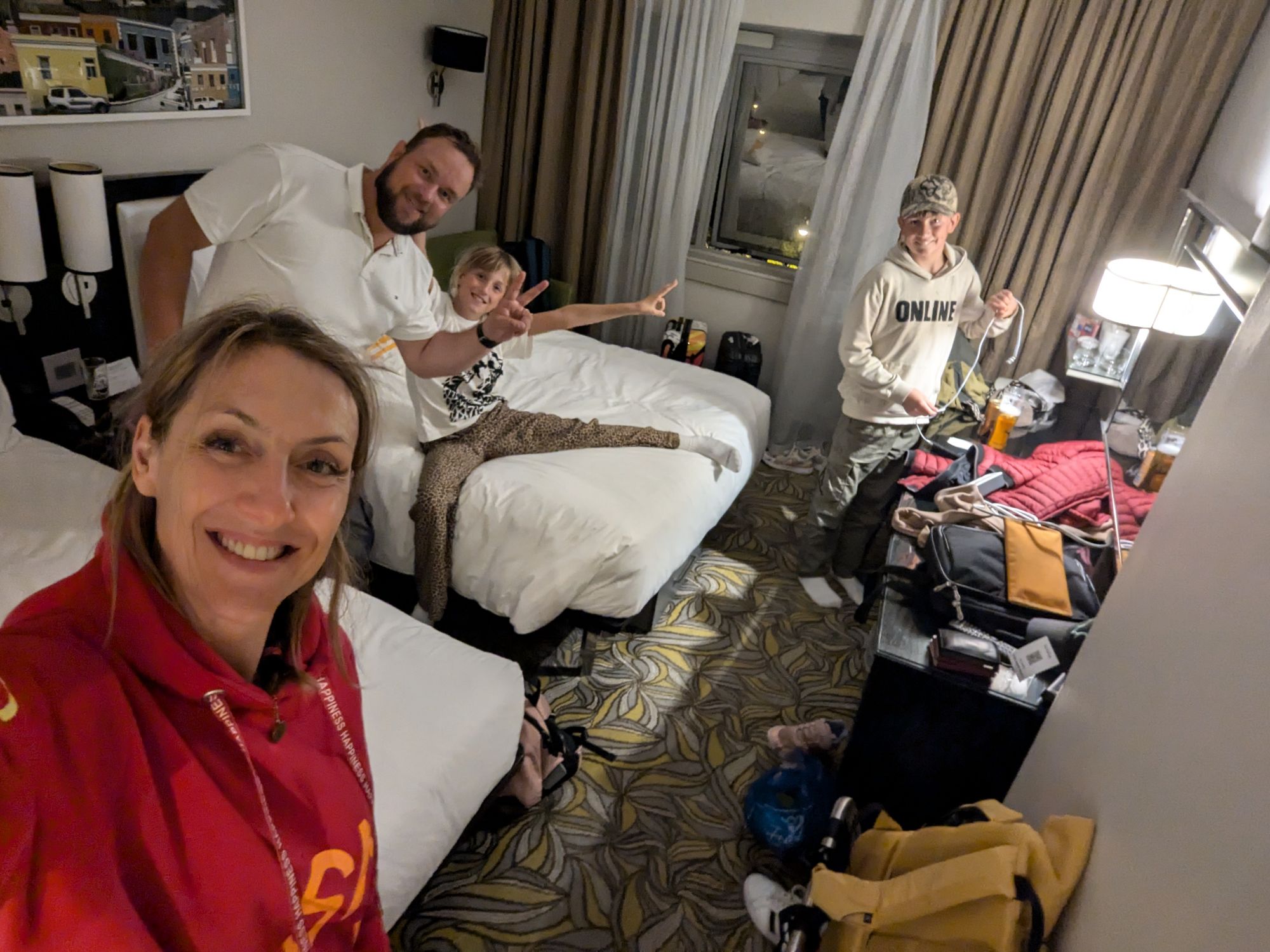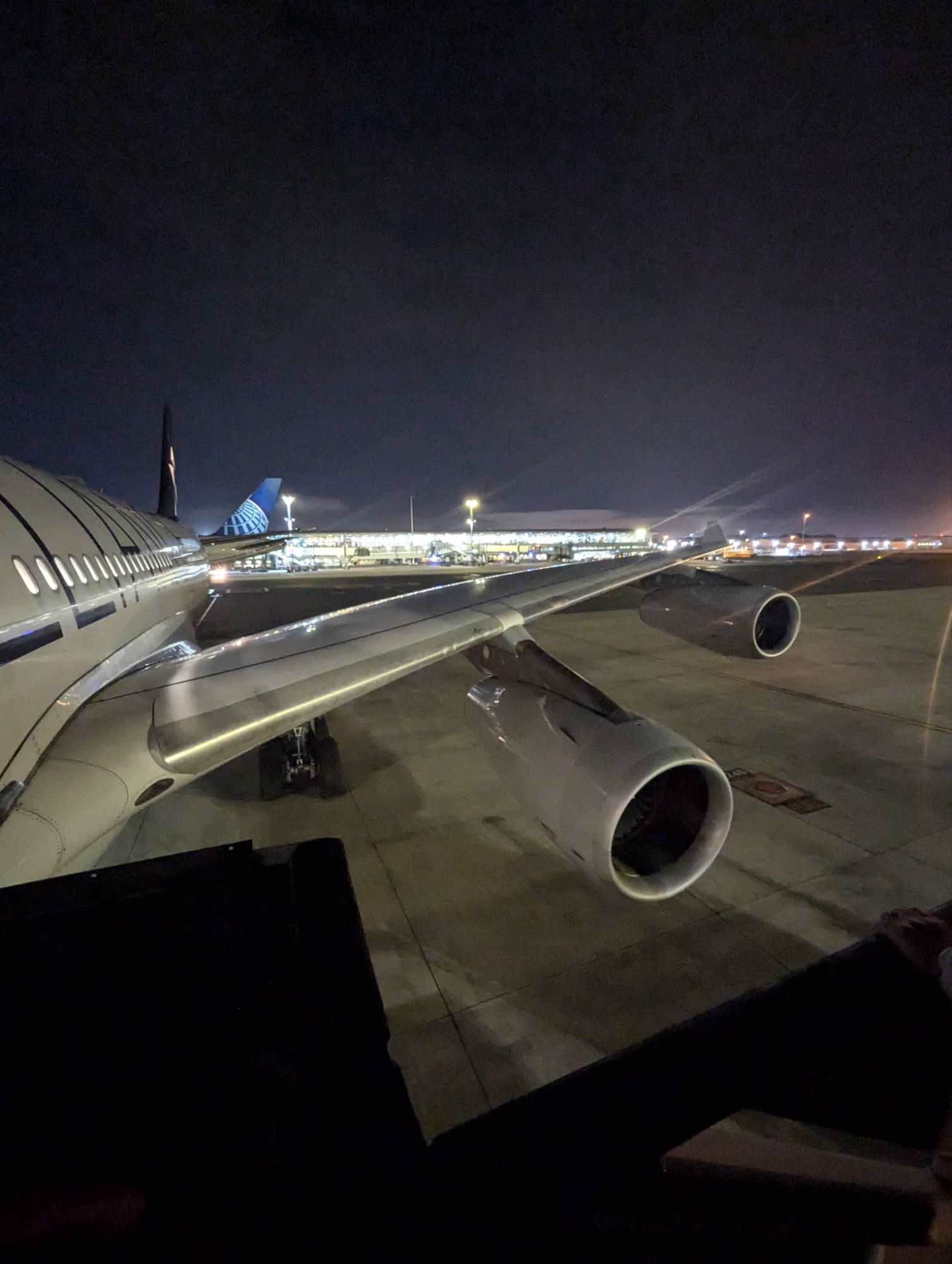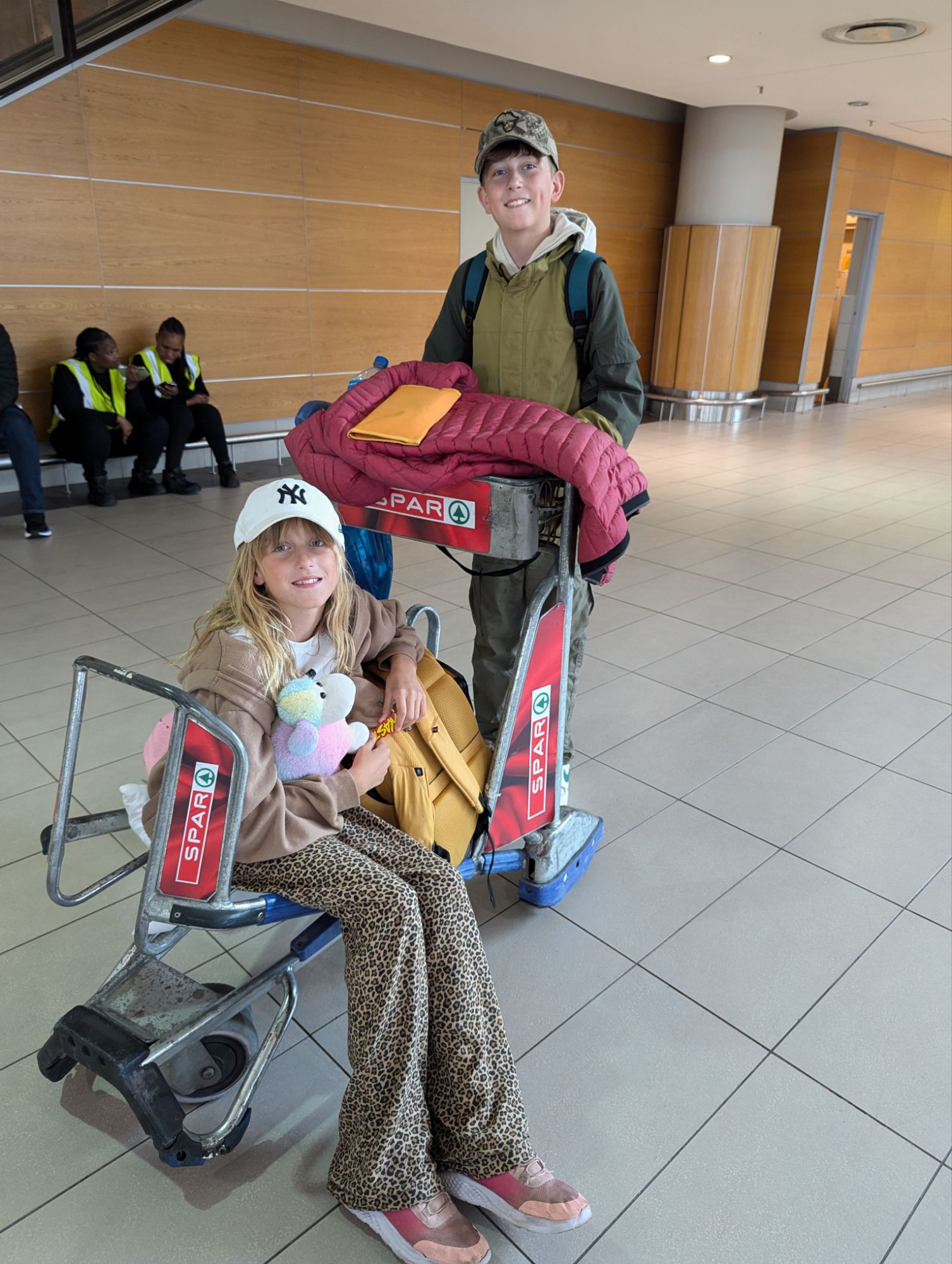 Alles gut gegangen und Sandra war überglücklich. Anschließend sind wir zum nächstgelegenen Strand nach Melkbosstrand gefahren, um dort ein letztes Mal in Südafrika Mittag zu essen (Spoiler: war es nicht) und den Atlantik noch mal zu sehen (Spoiler: war es auch nicht) , bevor es dann zum Flughafen ging. Wir sind ja bereits geübt: Auto ab- und Koffer aufgeben, Sicherheitskontrolle, warten am Gate. Dieses Mal kam aber etwas Neues dazu: Warten im Flieger. Es gab technische Probleme, die vor Ort nicht behoben werden konnten. Also hieß es nach 2h im stehenden Flugzeug für uns: Aussteigen, Koffer abholen, wieder einreisen und dann warten, bis man uns sagt, wie es weiter geht. Wir wurden dann auf Hotels in Stadtteil Waterfront verteilt und einen organisierten Bus gab es auch. Leider wusste dann bei Ankunft im Hotel niemand etwas und so warteten wir auch dort noch mal 2h bis wir dann endlich ein Zimmer hatten. Lieber spät als nie. Die Küche im Hotel war dann schon kalt, aber man uns netter Weise noch ein paar Sandwiches zubereitet, um den größten Hunger zu stillen. Es war dann schon gegen 23 Uhr als wir erschöpft in unseren Betten lagen.