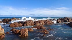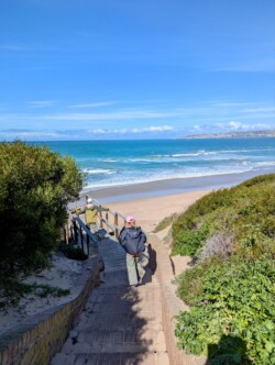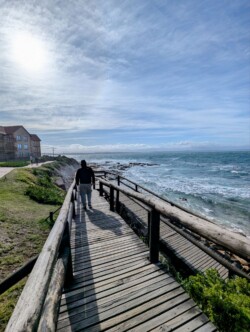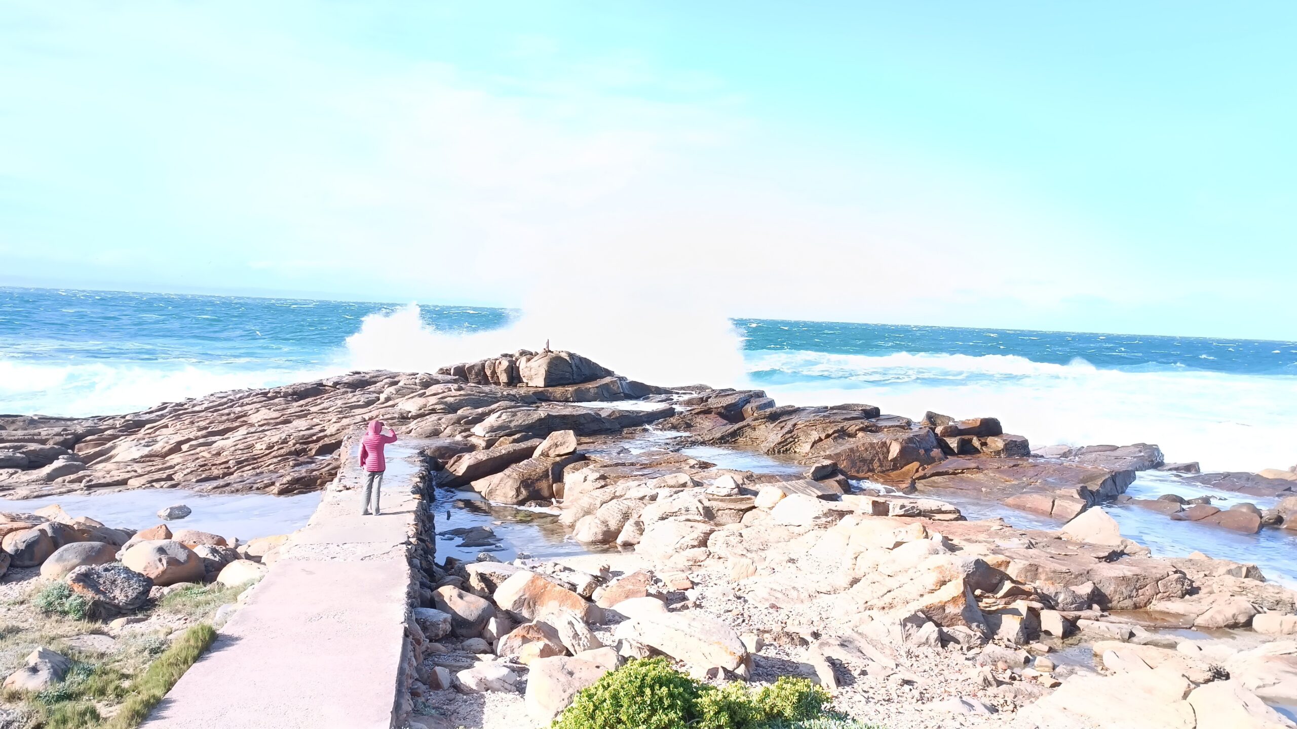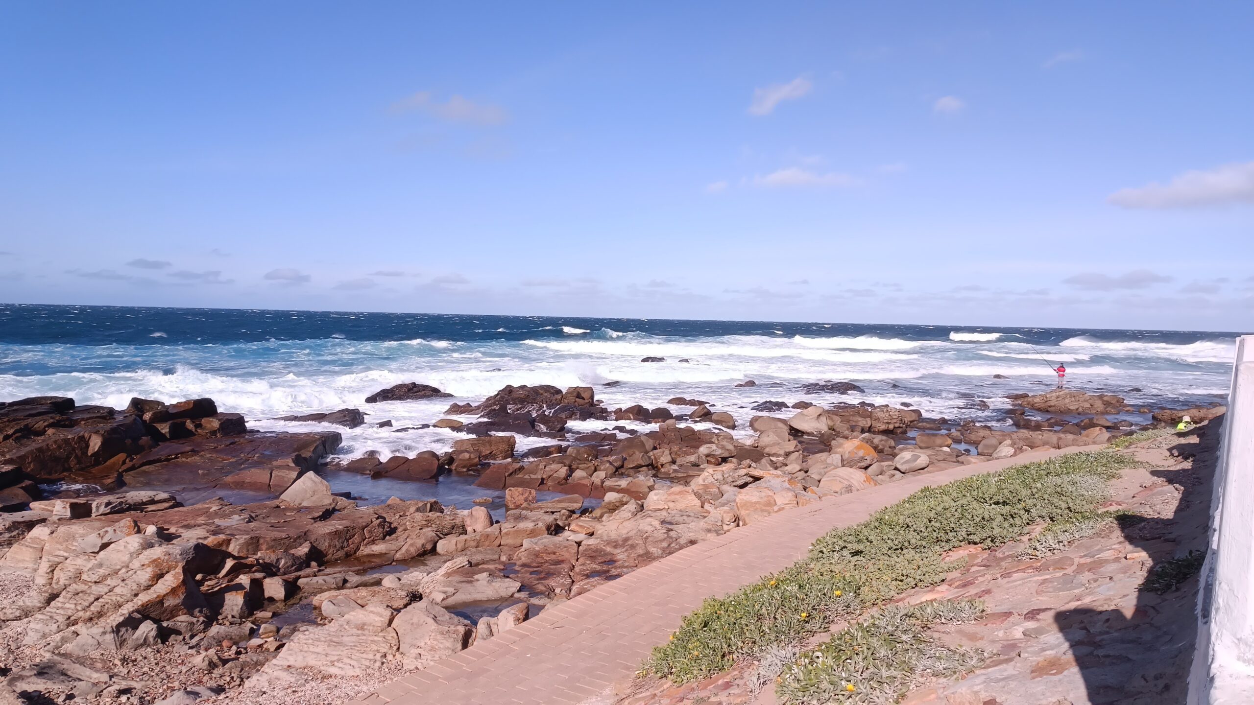 Viel frische Luft macht müde. Daher erstmal kurz Pause im Appartement. Im Anschluss folgte noch eine kleine Runde zu zweit. Wir machten uns zu Fuß auf zum Mossel Bay Point. Der Weg führt direkt an unserer Unterkunft vorbei. Beeindruckende Aussichten und hohe Wellen begleiteten uns. Zur Belohnung gabs noch ein richtig gutes Softeis, das wir zwischen tosender Brandung und riesigen Felsen genossen🍦.