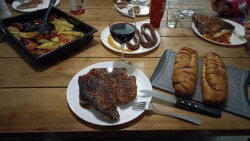 In Mossel Bay angekommen hieß es dann mal wieder Ankommen, Auspacken, Einkaufen. Aber heute dann auch endlich: Grillen. Landestypisch haben wir zunächst ein Feuer gemacht und dann später über der Glut gegrillt. Dazu eine Flasche Rotwein vom Spier. Das Leben ist schön 🙂 Unsere Unterkunft, direkt am Meer hat Sandra wirklich gut ausgesucht. Wir Blicken vom Bett aus direkt auf den Indischen Ozean. Traumhaft.