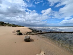 Heute sind wir in Mossel Bay angekommen. Über 400km haben wir heute zurückgelegt. Damit die Fahrt nicht zu lang wird, haben wir einen Zwischenstopp in Witsand eingelegt. Dort hatten wir in 2019 tolle Waldaufnahmen machen können. Heute leider Fehlanzeige. Zwar sind einige Walkühe mit ihren Kälbern vor Ort gewesen, aber leider ließ die Witterung einen Drohnenflug nicht zu. Wir haben dann einfach den Strand erkundet und waren im The Anchorage essen – einer urigen Fischerkneipe direkt am Strand.