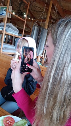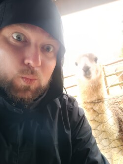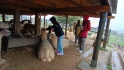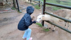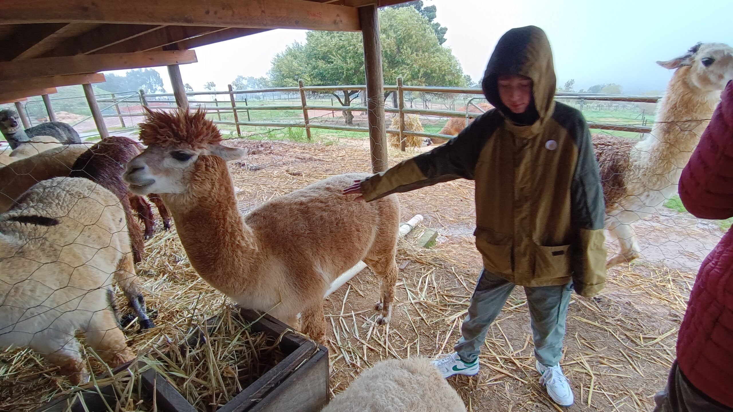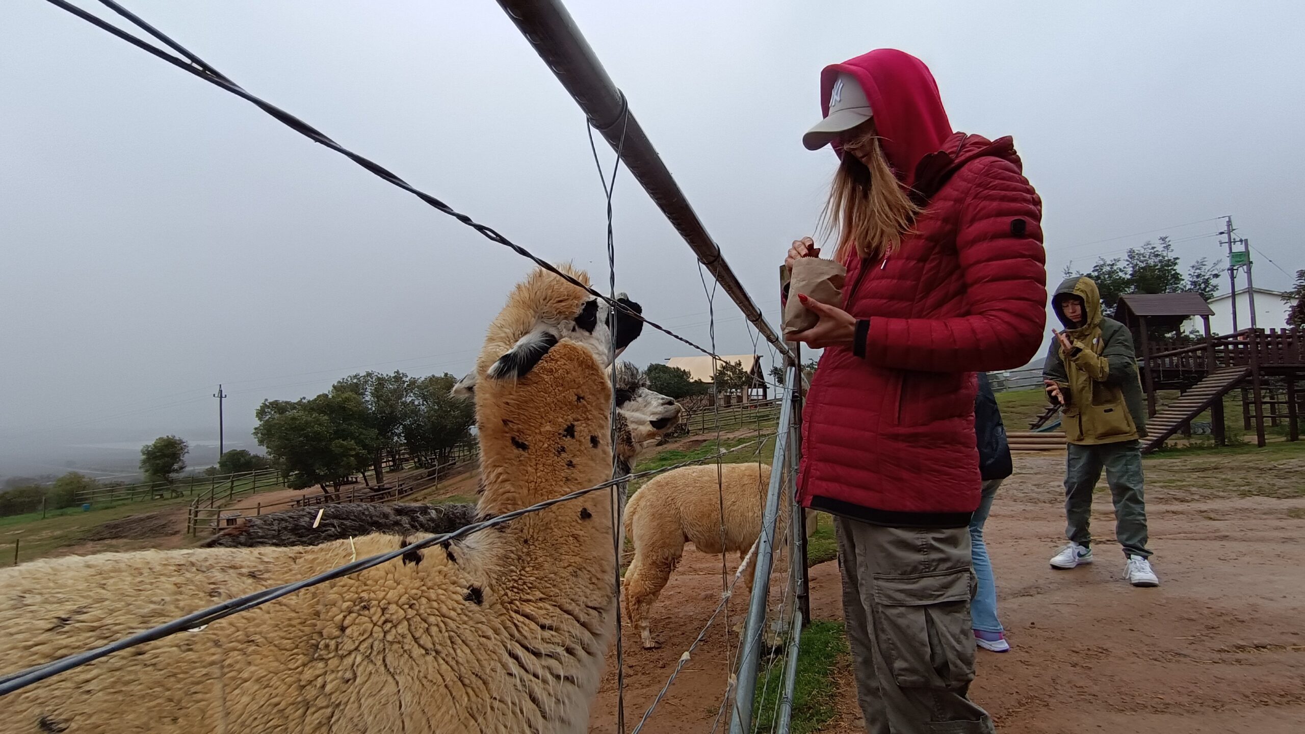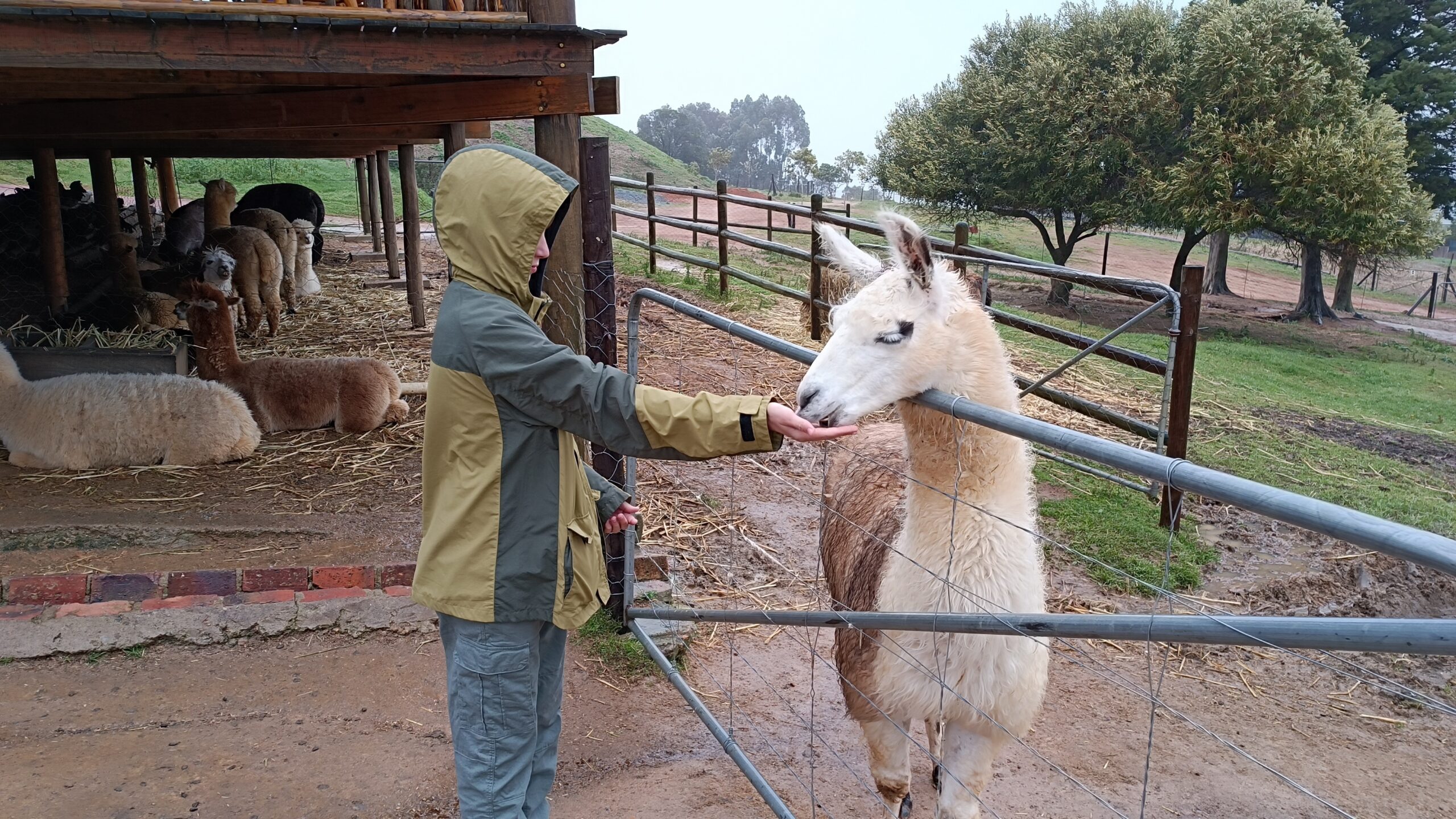 Frisch gestärkt und aufgewärmt konnte es endlich losgehen. Schnell noch Futter kaufen und dann ab nach draußen. Direkt unter der Terrasse kuschelten sich zahlreiche Alpakas, Lamas und Hähne zusammen🦙❤️. Die mochten das Wetter wohl auch nicht. Gierig futterten die flauschigen Tierchen direkt aus der Hand. Ein schönes Erlebnis! Noch ein kurzer Abstecher zu den gefräßigen Ziegen, dann waren wir alle pitschnass und durchgefroren.