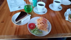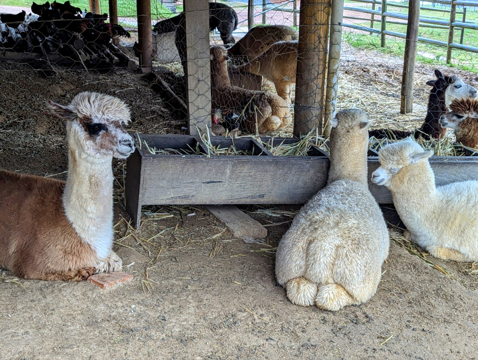 Gegen Mittag musste dann ein Ausweichplan her. Interessante Ziele gibt’s ja genug. Nach kurzer Recherche entschieden wir uns für einen Ausflug zu einer Alpaka- Farm mit zugehörigem Café. Gesagt- Getan! Leider setzte nun auch Regen ein und es wurde ungemütlich. Also starteten wir mit Kaffee, Milchshakes und Kuchen☕🍰.